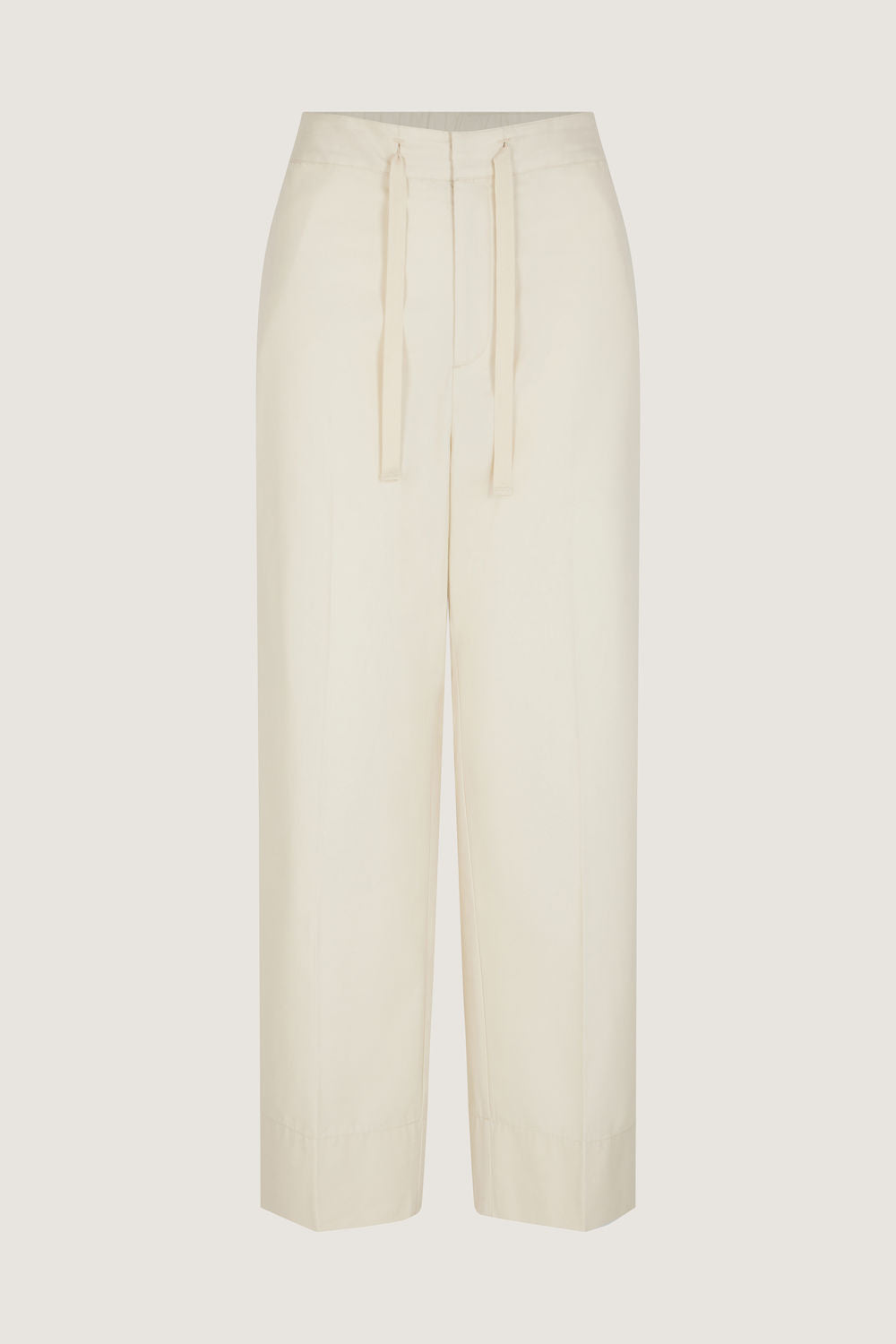 Elasticated waist trousers in cotton and silk fabric - Straight cut- Elasticated drawstring waistband- Two front pockets- Buttoned welt pockets at the back This piece is certified OEKO-TEX® Standard 100.