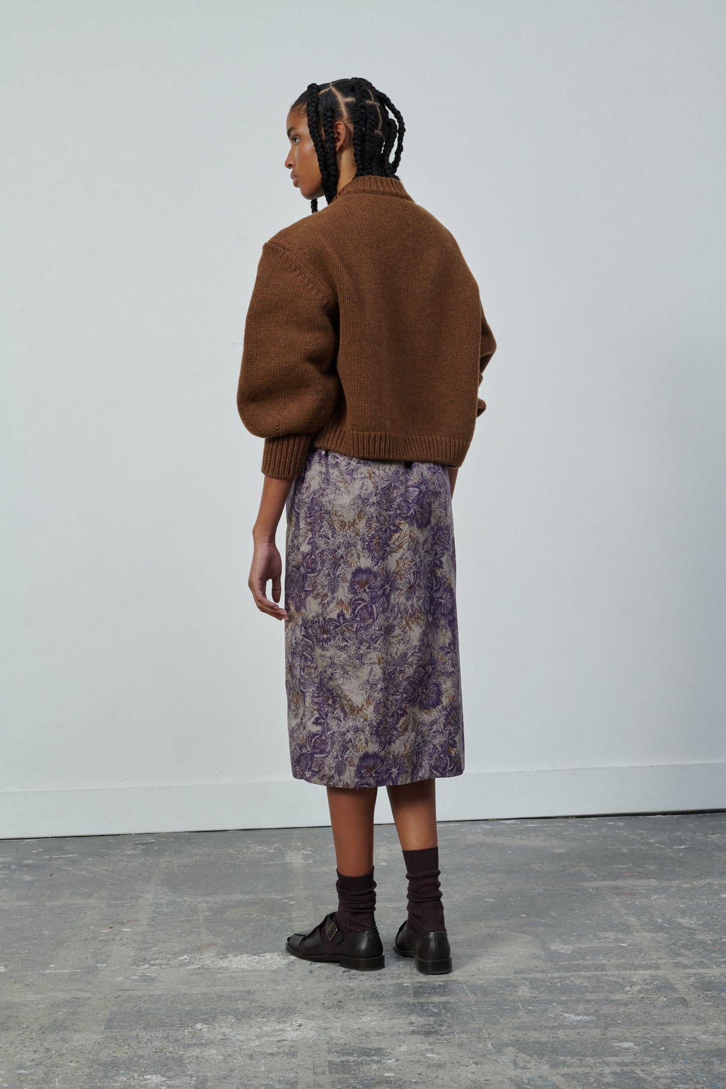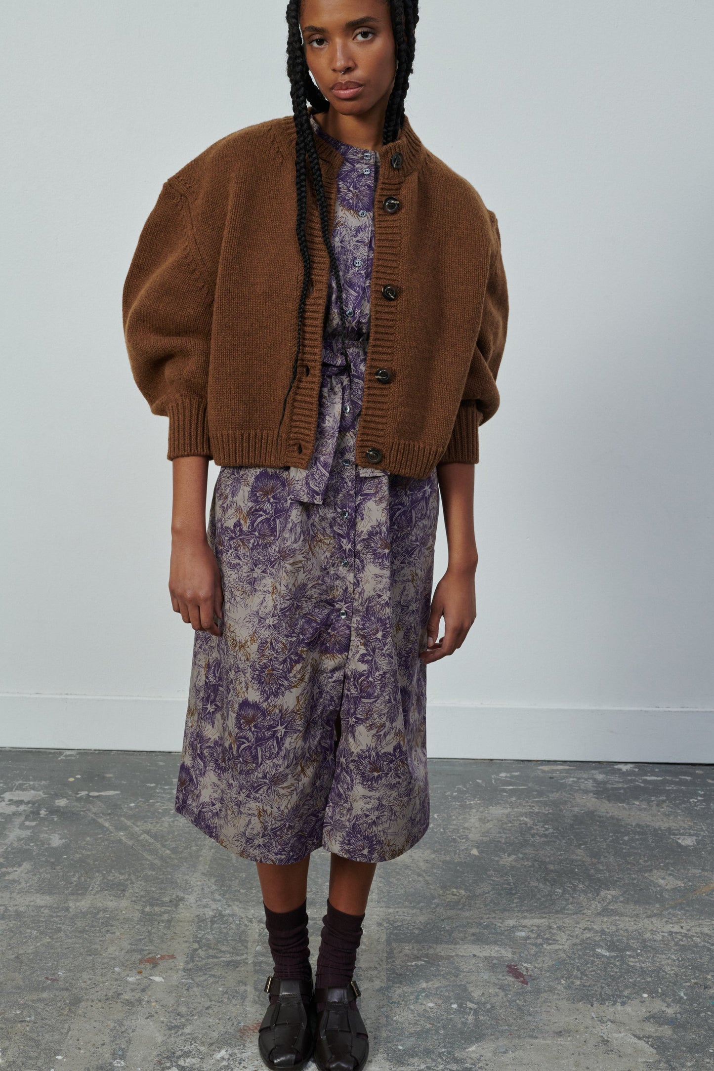 Printed cotton poplin dress chestnut/purple